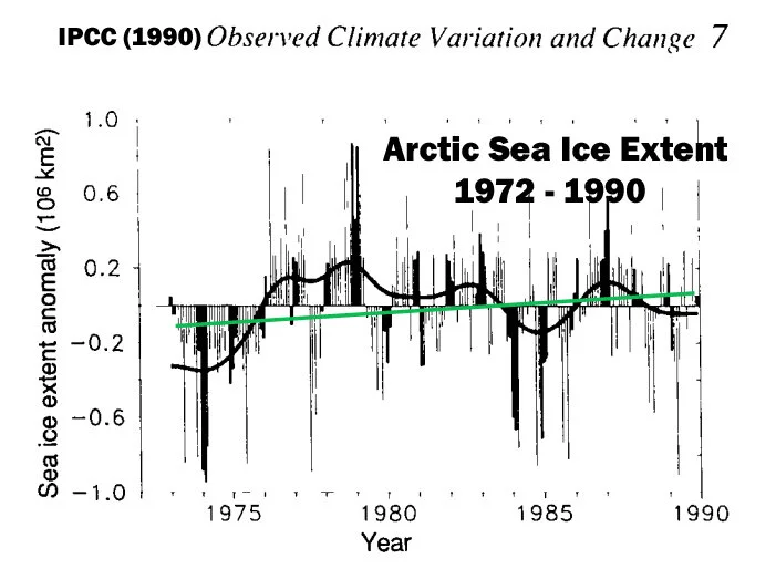Junk graf Sattelitovervågning af Arktis startede i 1979. Før den tid var Arktis isudbredelsen dårligt kendt, kun de få skibe, der sejlede derop kunne rapportere en prik i kortet på en given dag. Så højst upålidelige målinger, og fake grafer produceret ril lejligheden. |